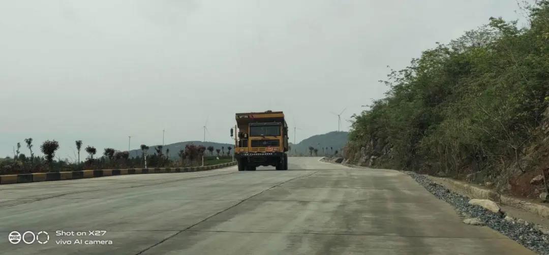 (1)道路設(shè)施。在與業(yè)主的積極溝通下,對(duì)礦山運(yùn)礦道路全長(zhǎng)約2.7公里進(jìn)行路面硬化,道路寬8~9米,硬化厚度30cm,最大縱坡為8%,達(dá)到三級(jí)公路標(biāo)準(zhǔn),并同步完善設(shè)置應(yīng)急避險(xiǎn)車道,彎道凹面鏡設(shè)置,道路護(hù)坡墻、截排水溝等設(shè)施,大大減少因路面坑洼不平產(chǎn)生的安全隱患,避免因路面寬度不足、無應(yīng)急避險(xiǎn)車道、彎道視野有限等因素發(fā)生運(yùn)輸安全事故。