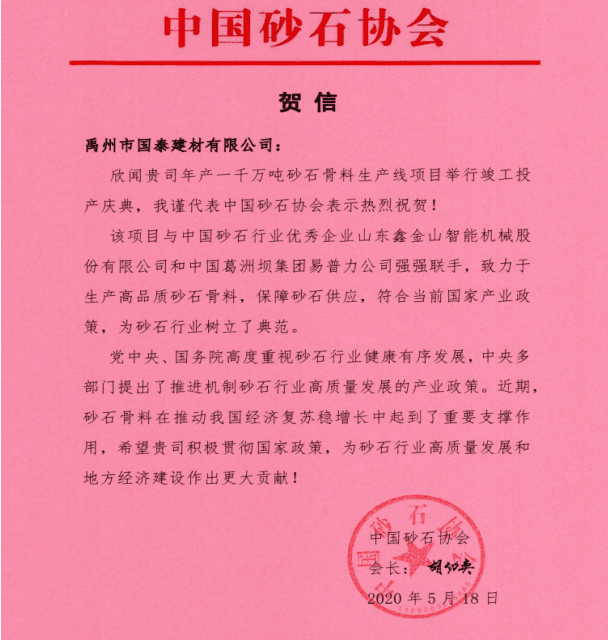 胡會長強(qiáng)調(diào),黨中央國務(wù)院高度重視砂石行業(yè)健康有序發(fā)展,中央多部門提出了推進(jìn)機(jī)制砂石行業(yè)高質(zhì)量發(fā)展的產(chǎn)業(yè)政策。近期,砂石骨料在推動我國經(jīng)濟(jì)復(fù)蘇穩(wěn)增長中起到了重要的支撐作用,希望禹州市國泰建材有限公司積極貫徹國家政策,為砂石行業(yè)高質(zhì)量發(fā)展和地方經(jīng)濟(jì)建設(shè)做出更大貢獻(xiàn)。
