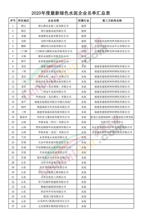 附:各地區(qū)最新綠色水泥企業(yè)名單匯總表