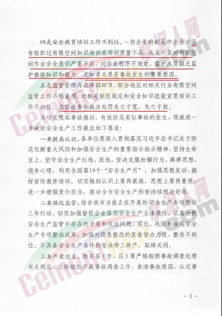 部分地區(qū)對相關(guān)行業(yè)有限空間監(jiān)管工作不夠重視,對相關(guān)制度規(guī)定和安全知識技能宣貫培訓(xùn)工作不到位,監(jiān)督檢查和執(zhí)法處罰失之于寬、失之于軟。原文如下: