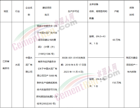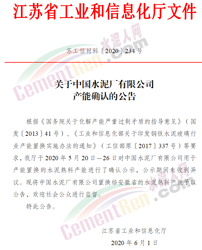 關(guān)于中國(guó)水泥廠有限公司產(chǎn)能確認(rèn)的公告