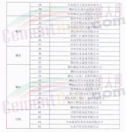 山東省水泥企業(yè)的熟料生產線(不含特種水泥窯,含建通窯)。