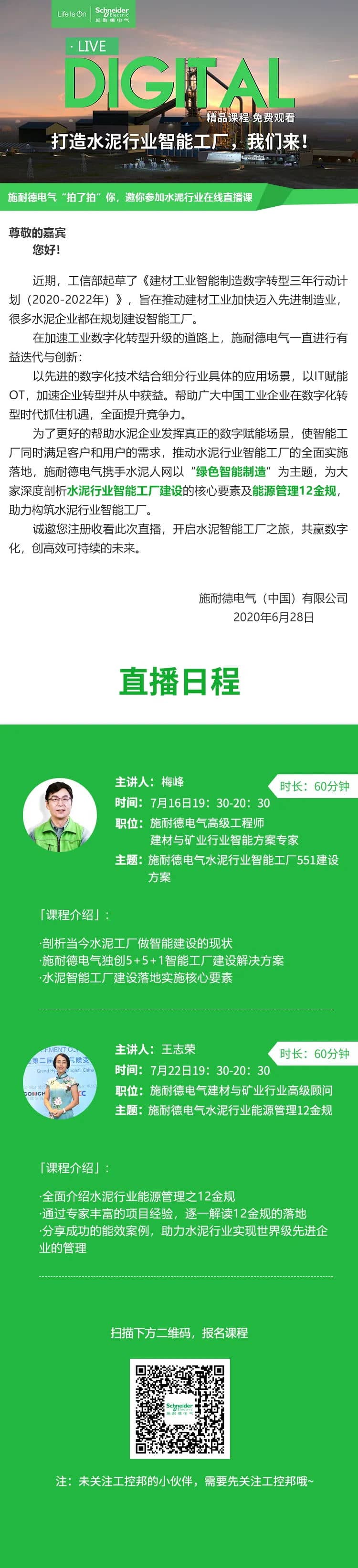 為此,水泥人網(wǎng)特意邀請(qǐng)施耐德電氣兩位資深水泥行業(yè)專(zhuān)家,為行業(yè)企業(yè)奉上兩堂智能化盛宴,既有超前獨(dú)到的理論見(jiàn)解,又有豐富生動(dòng)的案例實(shí)踐,助力所有關(guān)心智能工廠建設(shè)的企業(yè),做到“心中有數(shù)”!