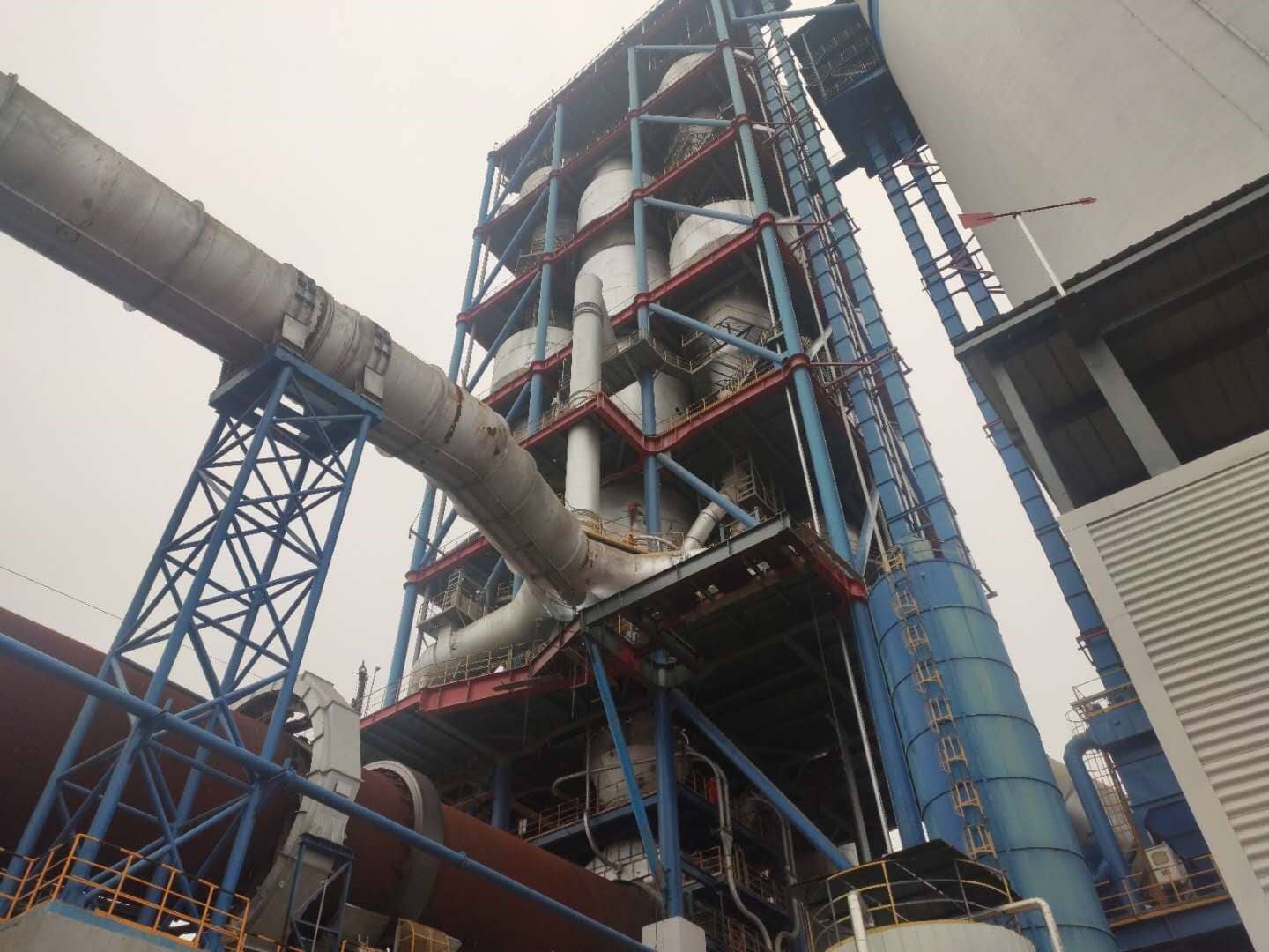 本次對(duì)接工作主要是在窯系統(tǒng)中安裝熱盤爐,通過(guò)拆解五級(jí)預(yù)熱器、下料管以及三次風(fēng)管,然后進(jìn)行加裝熱盤爐,再進(jìn)行改造、重裝恢復(fù)原有的設(shè)備,此項(xiàng)目計(jì)劃歷時(shí)一個(gè)月,熱盤爐的加裝,將不影響窯系統(tǒng)、危廢項(xiàng)目建設(shè)的后期工作。