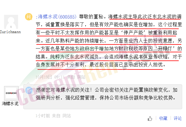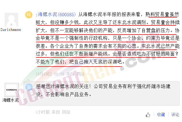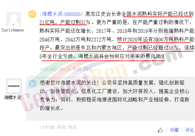 近期有投資者在上市公司投資平臺向海螺水泥提出相關(guān)東北市場的問題時(shí)稱,東北和內(nèi)蒙古地區(qū),產(chǎn)能過剩已經(jīng)超過56%,連續(xù)5年全行業(yè)虧損。海螺水泥將會如何應(yīng)對未來的暴風(fēng)雨?