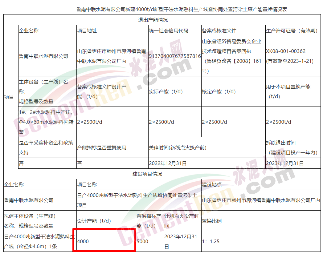 一、魯南中聯(lián)水泥減量置換新建一條4000噸的新型干法水泥熟料