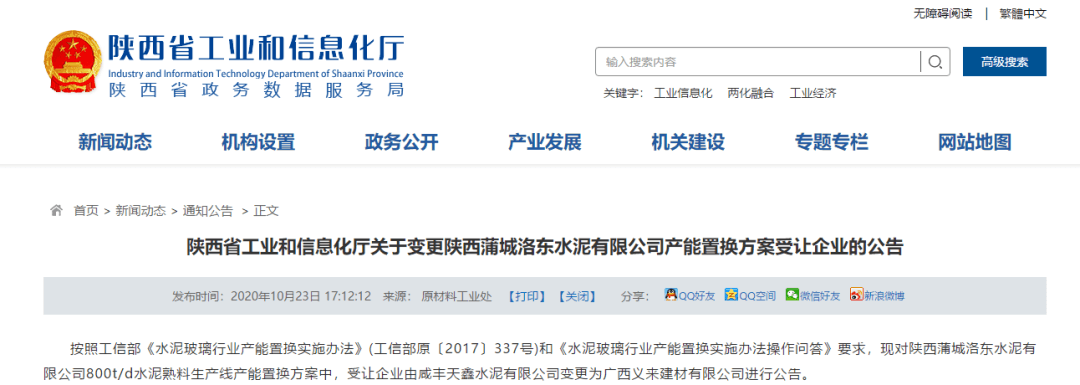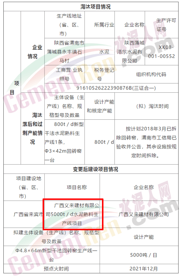 五、陜西800t/d水泥熟料產(chǎn)能退出,用于廣西新建一條5000t/d水泥熟料生產(chǎn)線(xiàn)