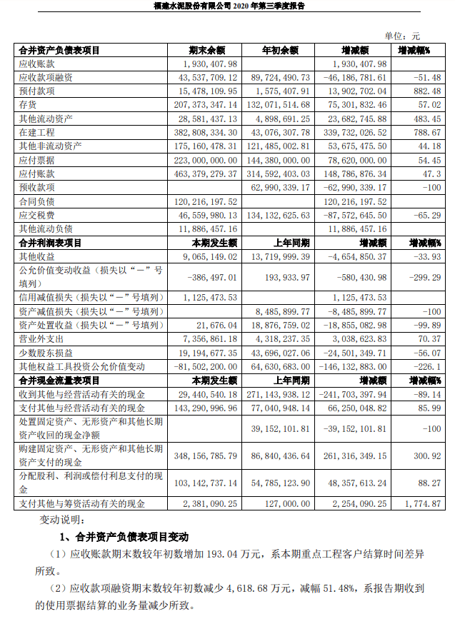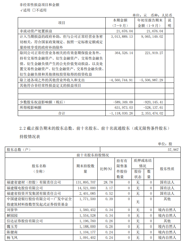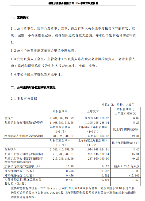 10月26日晚間,福建水泥披露半年報(bào)顯示,公司前三季度實(shí)現(xiàn)營收20.43億元,同比增長3.46%;實(shí)現(xiàn)凈利2.18億元,同比減少15.31%。