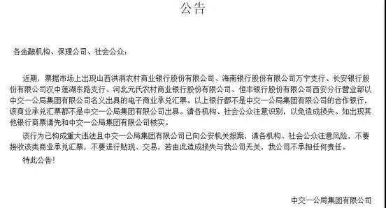 在上述聲明中,中鐵武漢表示,自今年1月20日起,除建設(shè)銀行武漢光谷自貿(mào)區(qū)分行外,該司已全面暫停其他金融機(jī)構(gòu)開具商業(yè)承兌匯票,并提醒凡是出票日期在2020年1月20日(含當(dāng)日)之后,在建設(shè)銀行武漢光谷自貿(mào)區(qū)分行以外的金融機(jī)構(gòu)開具的商業(yè)承兌匯票,均為冒名或偽造票據(jù)。就在去年,多家央企相繼“中招”假商票。2019年年底,中交一公局集團(tuán)有限公司、中國(guó)建筑第八工程局有限公司、中國(guó)建筑第六工程局有限公司、中冶天工集團(tuán)有限公司和中國(guó)建筑第五工程局有限公司相繼發(fā)布公告稱,有不法分子涉嫌偽造企業(yè)資料,冒用公司名義開立銀行賬戶,并通過虛假銀行賬戶冒用公司名義簽發(fā)和承兌電子商業(yè)匯票。