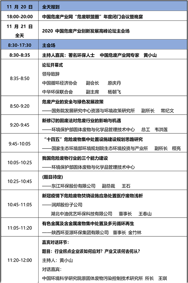 為規(guī)范危險(xiǎn)廢物處置工程的建設(shè)和運(yùn)行并提高危廢利用總體處置水平,控制環(huán)境風(fēng)險(xiǎn),改善環(huán)境質(zhì)量,助力推動(dòng)建立“無(wú)廢城市”綜合管理制度和技術(shù)體系,推動(dòng)完成“十四五”時(shí)期生態(tài)環(huán)境保護(hù)的總體目標(biāo),中國(guó)危廢產(chǎn)業(yè)網(wǎng)在成功舉辦三屆危廢高峰論壇的基礎(chǔ)上聯(lián)合相關(guān)部門(mén)將于2020年11月20日-22日在北京舉辦第四屆“中國(guó)危廢產(chǎn)業(yè)創(chuàng)新發(fā)展論壇暨危廢資源化與無(wú)害化處置研討會(huì)”。歡迎各單位選派或組織相關(guān)人員參加,現(xiàn)將論壇具體內(nèi)容通知如下: