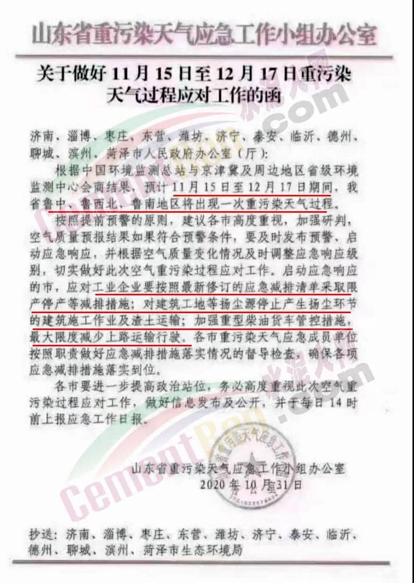 上一波重污染天氣應(yīng)急響應(yīng)剛剛結(jié)束,山東省重污染天氣應(yīng)急工作小組辦公室就發(fā)布了《關(guān)于做好11月15日至12月17日重污染天氣過(guò)程應(yīng)對(duì)工作的函》給濟(jì)南、淄博、棗莊、東營(yíng)、濰坊、濟(jì)寧、泰安、臨沂、德州、聊城、濱州、菏澤市人民政府辦公室(廳)稱,根據(jù)中國(guó)環(huán)境監(jiān)測(cè)總站與京津冀及周邊地區(qū)省級(jí)環(huán)境監(jiān)測(cè)中心會(huì)商結(jié)果,預(yù)計(jì)11月15日至12月17日期間,山東省魯中、魯西北、魯南地區(qū)將出現(xiàn)一次重污染天氣過(guò)程。