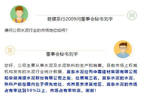 1.產(chǎn)能、產(chǎn)品和區(qū)位優(yōu)勢(shì):通過(guò)40多年的發(fā)展,公司形成涵蓋水泥產(chǎn)業(yè)鏈延伸并多個(gè)產(chǎn)業(yè)領(lǐng)域,是北方最大的水泥生產(chǎn)企業(yè),熟料生產(chǎn)線全部采用新型干法技術(shù),熟料產(chǎn)能達(dá)到1.17億噸、水泥產(chǎn)能達(dá)到1.7億噸,水泥生產(chǎn)線布局和銷售網(wǎng)絡(luò)覆蓋13個(gè)省、自治區(qū)、直轄市,在所布局的區(qū)域形成了規(guī)模上的比較優(yōu)勢(shì)并擁有接續(xù)保供大工程、大客戶的能力,比單體企業(yè)具有規(guī)模優(yōu)勢(shì),尤其在京津冀地區(qū),市場(chǎng)占有率超過(guò)50%,市場(chǎng)占有率、市場(chǎng)話語(yǔ)權(quán)進(jìn)一步增強(qiáng)。