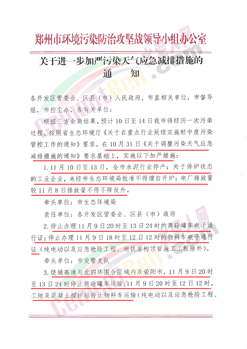 同日,鄭州市環(huán)境污染防治攻堅戰(zhàn)領(lǐng)導(dǎo)小組辦公室發(fā)布《關(guān)于進(jìn)一步加嚴(yán)污染天氣應(yīng)急減排措施的通知》稱, 按照省生態(tài)環(huán)境廳《關(guān)于在重點(diǎn)行業(yè)延續(xù)實(shí)施輕中度污染管控工作的通知》要求,在10月31日《關(guān)于調(diào)整污染天氣應(yīng)急減排措施的通知》要求基礎(chǔ)上,實(shí)施加嚴(yán)措施: