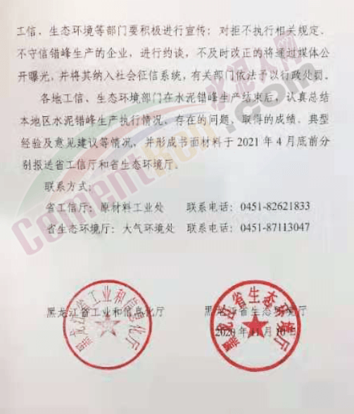 《通知》要求,加強(qiáng)行業(yè)自律和輿論宣傳監(jiān)督。黑龍江省水泥行業(yè)協(xié)會(huì)要認(rèn)真組織行業(yè)內(nèi)水泥熟料生產(chǎn)企業(yè)簽訂《錯(cuò)峰生產(chǎn)自律公約》,強(qiáng)化行業(yè)自律,同時(shí)做好東北三省水泥行業(yè)的區(qū)域協(xié)同合作。水泥企業(yè)要提前做好錯(cuò)峰生產(chǎn)的各項(xiàng)準(zhǔn)備工作,并強(qiáng)化對(duì)錯(cuò)峰生產(chǎn)責(zé)任感、榮譽(yù)感和自律性認(rèn)識(shí),自覺遵守水泥錯(cuò)峰生產(chǎn)的有關(guān)規(guī)定。對(duì)錯(cuò)峰生產(chǎn)好的做法、經(jīng)驗(yàn)和典型,工信、生態(tài)環(huán)境等部門要積極進(jìn)行宣傳;對(duì)拒不執(zhí)行相關(guān)規(guī)定、不守信錯(cuò)峰生產(chǎn)的企業(yè),進(jìn)行約談,不及時(shí)改正的將通過媒體公開曝光,并將其納入社會(huì)征信系統(tǒng),有關(guān)部門依法予以行政處罰。根據(jù)《通知》,黑龍江省各地工信、生態(tài)環(huán)境部門要在水泥錯(cuò)峰生產(chǎn)結(jié)束后,認(rèn)真總結(jié)本地區(qū)水泥錯(cuò)峰生產(chǎn)執(zhí)行情況、存在的問題、取得的成績(jī)、典型經(jīng)驗(yàn)及意見建議等情況,并形成書面材料于2021年4月底前分別報(bào)送黑龍江省工信廳和生態(tài)環(huán)境廳。