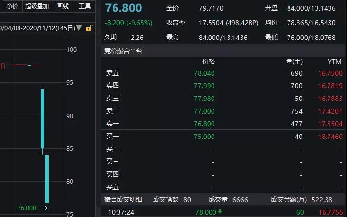 總負(fù)債23億,唯一一期公開市場債券只有3個億,砸到80元,55%ytm。