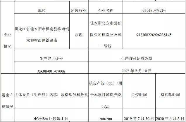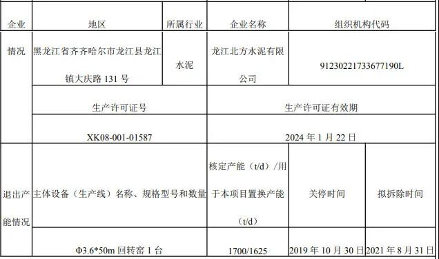 烏海梁柱水泥有限公司于2020年8月將Φ2.9×42m新型干法回轉窯拆除完畢。同時將烏海梁柱水泥有限公司Ф2.9×42m新型干法水泥熟料生產線18萬噸產能列入年度水泥付出產能任務,置換產能不得重復使用。