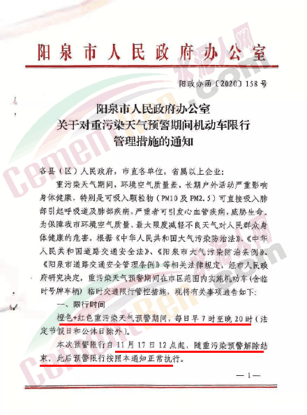 同日,山西陽(yáng)泉發(fā)布重污染天氣預(yù)警期間機(jī)動(dòng)車限行管理措施,要求在橙色+紅色重污染天氣預(yù)警期間,每日早7時(shí)至晚20時(shí)限行。本次預(yù)警限行自11月17日12瞇起,隨重污染預(yù)警解除結(jié)束,此后預(yù)警限行按照本通知正常執(zhí)行。