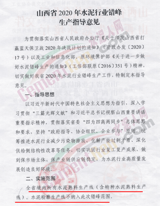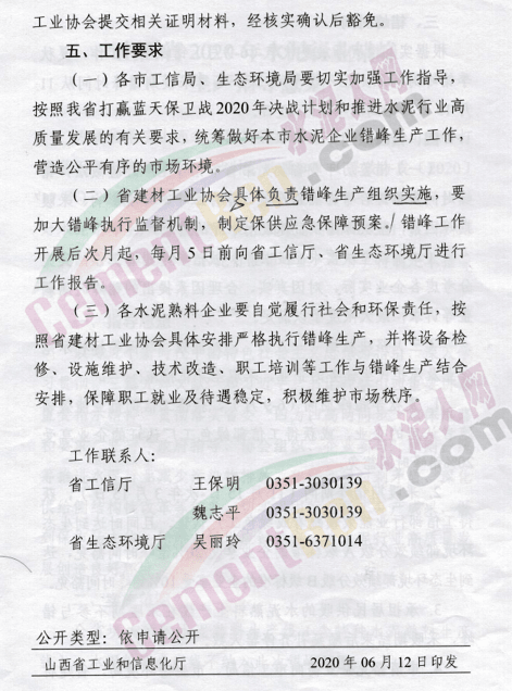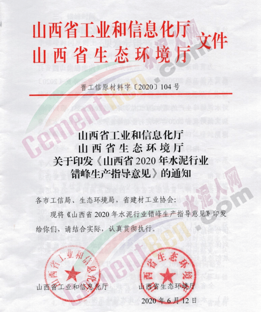 根據(jù)此前山西省工業(yè)和信息化廳山西省生態(tài)環(huán)境廳聯(lián)合發(fā)布的《山西省2020年水泥行業(yè)錯(cuò)峰生產(chǎn)指導(dǎo)意見(jiàn)》要求全省境內(nèi)所有水泥熟料生產(chǎn)線從2020年11 月15日開(kāi)始到2021年3月15日實(shí)施錯(cuò)峰停產(chǎn)。其中,獲得工信部行業(yè)能效領(lǐng)跑者或綠色工廠認(rèn)證,且同時(shí)達(dá)到生態(tài)環(huán)境部績(jī)效分級(jí)A級(jí)標(biāo)準(zhǔn)的企業(yè)享受20%錯(cuò)峰時(shí)間豁免,達(dá) 到生態(tài)環(huán)境部績(jī)效分級(jí)B級(jí)標(biāo)準(zhǔn)的企業(yè)享受10%錯(cuò)峰時(shí)間豁免。承擔(dān)居民供暖的水泥熟料生產(chǎn)線在采暖期不參與錯(cuò)峰,采暖期結(jié)束后順延補(bǔ)齊停窯天數(shù)。申請(qǐng)豁免企業(yè)需向市工信局、市生態(tài)環(huán)境局、省建材工業(yè)協(xié)會(huì)提交相關(guān)證明材料,經(jīng)核實(shí)確認(rèn)后豁免。