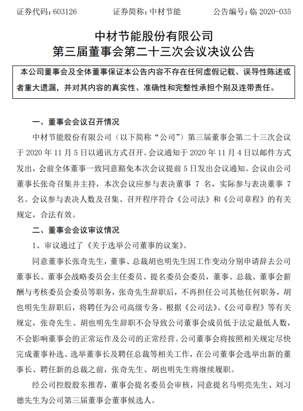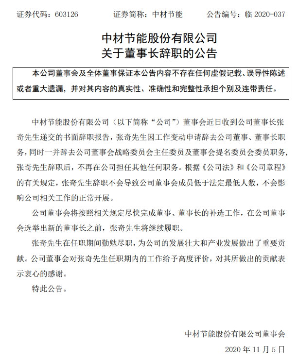 日前,中材節(jié)能發(fā)布公告稱,公司高管發(fā)生人事變動。具體事項如下: