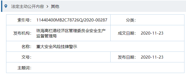 來源:珠海高欄港經濟區(qū)管理委員會安全生產監(jiān)督管理局