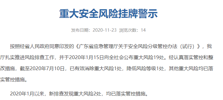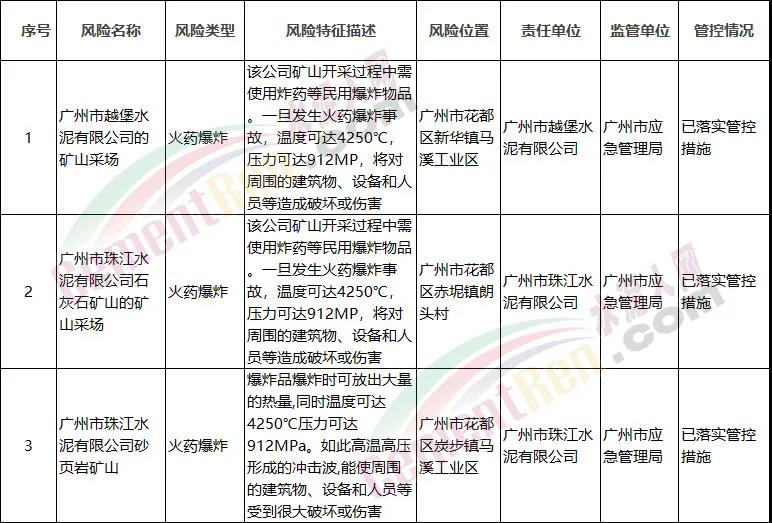 經認真落實管控和整改措施,截至2020年7月10日,已有效消除重大風險1處,降低風險等級1處,其他重大風險均已落實管控措施。2020年1月以來,新排查發(fā)現(xiàn)重大風險2處,均已落實管控措施。其中涉及水泥企業(yè)的3處礦山,分別為: