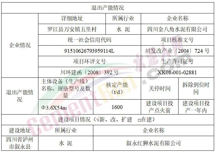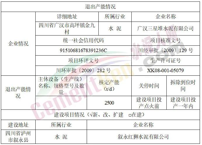 廣漢三星堆水泥有限公司產(chǎn)能指標轉(zhuǎn)出方案