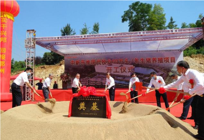 今年8月下旬,一則養(yǎng)豬業(yè)奇聞在各大社交媒體迅速流傳開來:湖北一年出欄60萬頭生豬養(yǎng)殖項目舉行開工典禮,將建設26層高的生產(chǎn)大樓及附屬配套設施,該項目隸屬于湖北中新開維現(xiàn)代牧業(yè)有限公司。公司100%控股的母公司為水泥企業(yè)湖北世紀新峰雷山水泥有限公司,企業(yè)法人諸葛文達。