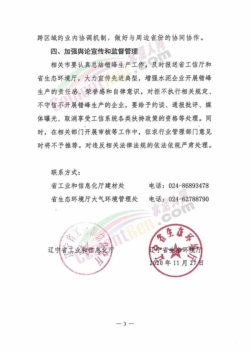 相關(guān)市要認(rèn)真總結(jié)錯(cuò)峰生產(chǎn)工作,及時(shí)報(bào)送省工信廳和省生態(tài)環(huán)境廳,大力宣傳先進(jìn)典型,增強(qiáng)水泥企業(yè)開展錯(cuò)峰生產(chǎn)的責(zé)任感、榮譽(yù)感和自律意識。對拒不執(zhí)行相關(guān)規(guī)定、不守信不開展錯(cuò)峰生產(chǎn)的企業(yè),要給予約談、通報(bào)批評、媒體曝光、取消享受工信系統(tǒng)各類扶持政策的資格等處理。同時(shí),在相關(guān)部門開展審核等工作中,征求行業(yè)管理部門意見時(shí)將不予推薦。對違反相關(guān)法律法規(guī)的依法依規(guī)嚴(yán)肅處理。通知原文如下: