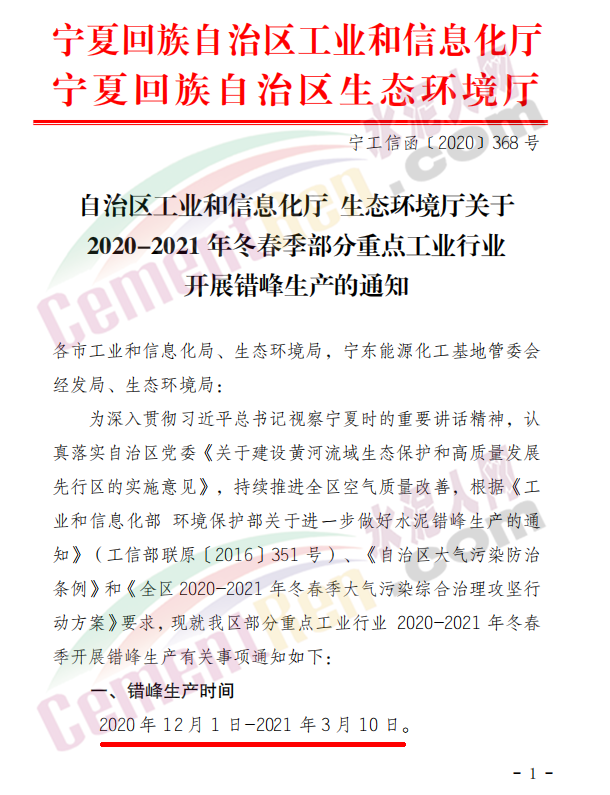 1.組織制定錯(cuò)峰生產(chǎn)實(shí)施方案。各市工業(yè)和信息化局、生態(tài)環(huán)境局要聯(lián)合制定本市的水泥熟料企業(yè)錯(cuò)峰生產(chǎn)實(shí)施方案(見(jiàn)附件),明確錯(cuò)峰生產(chǎn)企業(yè)清單及停窯時(shí)間節(jié)點(diǎn),實(shí)行臺(tái)賬管理,確保清單可操作性、可查詢(xún)。并在11月27日(星期五)前分別報(bào)自治區(qū)工信廳、生態(tài)環(huán)境廳,公示公告后實(shí)施。2.建立錯(cuò)峰生產(chǎn)調(diào)度制度。各市工信部門(mén)要按照行業(yè)管理職責(zé),建立錯(cuò)峰生產(chǎn)工作調(diào)度制度(自2020年12月起,各市每月6日前報(bào)上報(bào)上月錯(cuò)峰生產(chǎn)工作落實(shí)情況,直至錯(cuò)峰生產(chǎn)結(jié)束),隨時(shí)掌握重點(diǎn)企業(yè)錯(cuò)峰生產(chǎn)動(dòng)態(tài),對(duì)錯(cuò)峰生產(chǎn)執(zhí)行情況進(jìn)行督促督導(dǎo),及時(shí)協(xié)調(diào)解決錯(cuò)峰生產(chǎn)中出現(xiàn)的問(wèn)題。3.強(qiáng)化監(jiān)督檢查。各市工業(yè)和信息化局、生態(tài)環(huán)境局要提前檢查企業(yè)停窯準(zhǔn)備工作情況,督促所轄企業(yè)按規(guī)定時(shí)間停窯,及時(shí)對(duì)轄區(qū)內(nèi)水泥企業(yè)進(jìn)行指導(dǎo)、監(jiān)督和檢查,12月1日要組成聯(lián)合檢查組到現(xiàn)場(chǎng)監(jiān)督企業(yè)停窯,期間要不定時(shí)抽查停窯落實(shí)情況。必要時(shí)通過(guò)調(diào)取企業(yè)用電情況進(jìn)行實(shí)時(shí)監(jiān)控。生態(tài)環(huán)境部門(mén)要通過(guò)污染物排放在線監(jiān)測(cè)平臺(tái),及時(shí)了解掌握企業(yè)錯(cuò)峰生產(chǎn)執(zhí)行情況,組織開(kāi)展冬季大氣污染防治專(zhuān)項(xiàng)執(zhí)法檢查,依法查處超標(biāo)排放,監(jiān)測(cè)數(shù)據(jù)弄虛作假、違反排污許可證規(guī)定排放污染物的違法行為。要加大服務(wù)力度,協(xié)調(diào)督導(dǎo)各企業(yè)在錯(cuò)峰生產(chǎn)期間統(tǒng)籌做好設(shè)備檢修、技術(shù)改造等工作,嚴(yán)格落實(shí)企業(yè)排放限值要求,有效降低供暖季大氣污染,著力改善環(huán)境空氣質(zhì)量。要進(jìn)一步暢通舉報(bào)渠道,及時(shí)在門(mén)戶(hù)網(wǎng)站上向社會(huì)公開(kāi)電話、傳真、電子郵箱、網(wǎng)絡(luò)等多種舉報(bào)渠道,對(duì)不執(zhí)行行規(guī)行約、不守信不開(kāi)展錯(cuò)峰生產(chǎn)的企業(yè)通過(guò)媒體公開(kāi)曝光。4.嚴(yán)格責(zé)任追究。自治區(qū)工信廳、生態(tài)環(huán)境廳將不定期開(kāi)展錯(cuò)峰生產(chǎn)執(zhí)行情況和污染物達(dá)標(biāo)排放的專(zhuān)項(xiàng)監(jiān)督檢查。對(duì)不執(zhí)行行規(guī)行約,不守信不開(kāi)展錯(cuò)峰生產(chǎn)的企業(yè),必要時(shí)進(jìn)行約談;對(duì)拒不改正的企業(yè)由自治區(qū)工信廳核實(shí)后,在年度更新并公告的水泥熟料生產(chǎn)線清單中注明,限制其產(chǎn)能置換指標(biāo)交易,并取消享受自治區(qū)工信廳的各類(lèi)獎(jiǎng)補(bǔ)政策,列入嚴(yán)重違法失信企業(yè)名單。自治區(qū)生態(tài)環(huán)境保護(hù)領(lǐng)導(dǎo)小組辦公室將錯(cuò)峰生產(chǎn)執(zhí)行情況納入自治區(qū)黨委督查室、政府督查室和冬春季大氣攻堅(jiān)行動(dòng)下派工作組幫扶指導(dǎo)內(nèi)容。原文如下: