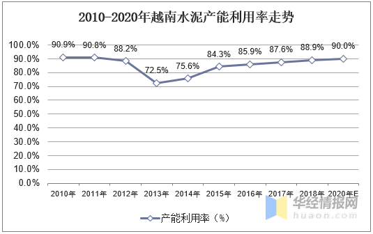 2010-2020年越南水泥產(chǎn)能利用率走勢