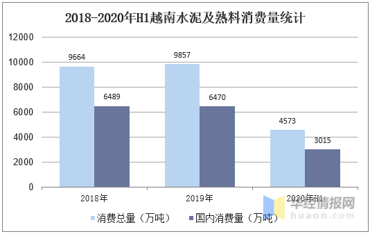 2018-2020年H1越南水泥基熟料消費量統(tǒng)計