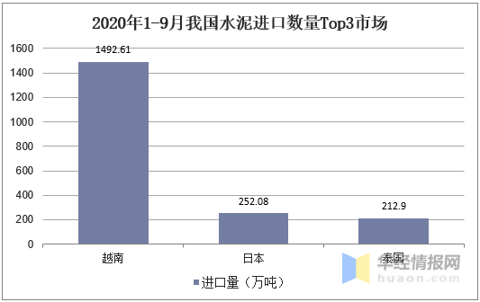 2020年1-9月我國水泥進口數(shù)量Top3市場