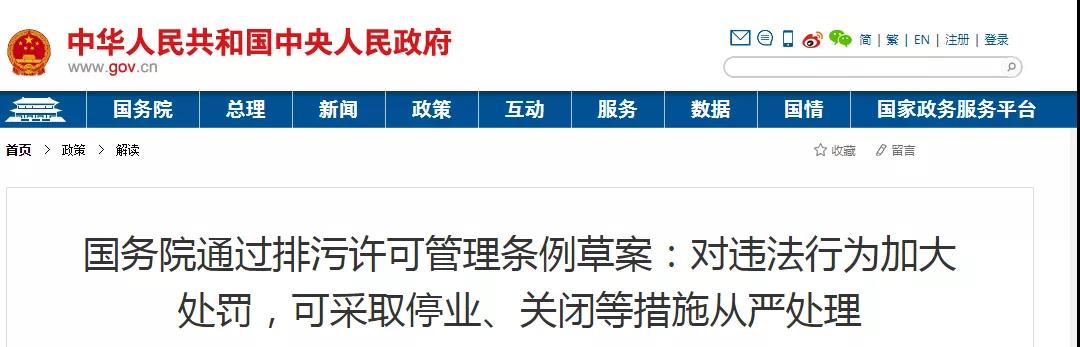 從征求意見至今歷時(shí)兩年多時(shí)間,《排污許可管理?xiàng)l例(草案)》獲得通過。會(huì)議明確根據(jù)污染物產(chǎn)生量、排放量、對(duì)環(huán)境影響程度等,對(duì)排污單位實(shí)行分類管理,規(guī)范排污許可證申請(qǐng)審批程序,要求排污單位建立環(huán)境管理臺(tái)賬記錄制度、公開排放信息,強(qiáng)調(diào)加強(qiáng)事中事后監(jiān)管,對(duì)違法行為加大處罰力度,采取按日連續(xù)處罰和停產(chǎn)整治、停業(yè)、關(guān)閉等措施從嚴(yán)處理,提高違法成本。會(huì)議還研究了其他事項(xiàng)。