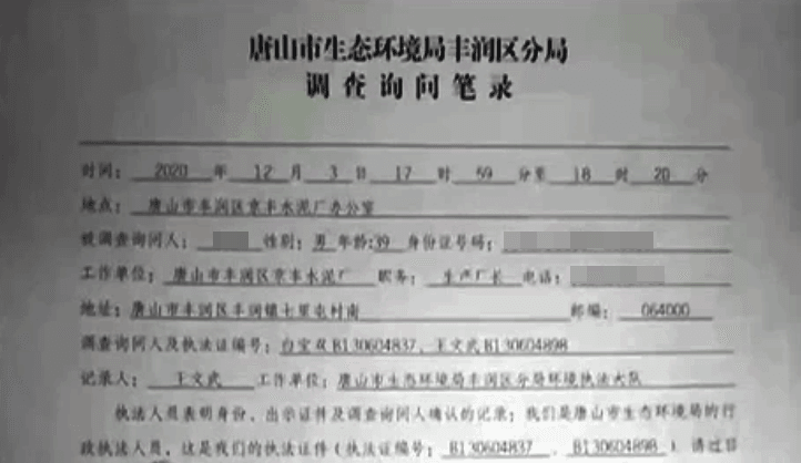 日前,河北省唐山市生態(tài)環(huán)境局夜查豐潤(rùn)區(qū)京豐水泥廠,發(fā)現(xiàn)有生產(chǎn)跡象和環(huán)境污染問題后,遭到該企業(yè)人員尾隨、跟蹤、阻礙,并辱罵環(huán)保執(zhí)法人員。