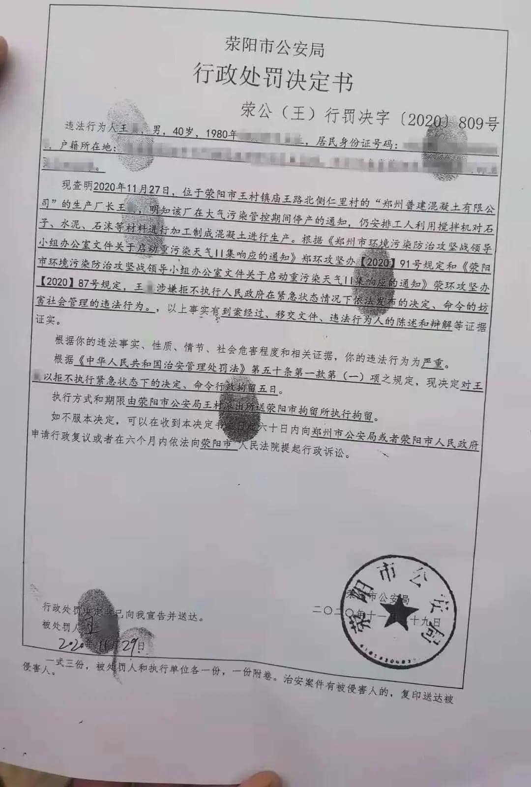 早在10月份,唐山豐潤(rùn)區(qū)冀龍水泥有限公司、唐山市豐潤(rùn)區(qū)順鑫水泥有限公司、唐山金達(dá)水泥廠等多家企業(yè)因未執(zhí)行唐山市啟動(dòng)的重污染天氣Ⅱ級(jí)預(yù)警應(yīng)急響應(yīng)減排措施。涉嫌環(huán)境違法分別被處以7萬元罰款,企業(yè)生產(chǎn)負(fù)責(zé)人也被處以行政拘留處罰。11月23日至12月2日,河南鄭州市持續(xù)對(duì)全市工業(yè)企業(yè)和建筑工地進(jìn)行全方位督查,經(jīng)督導(dǎo)組和公安部門核查,對(duì)5家未落實(shí)大氣污染管控措施、違法生產(chǎn)施工的單位負(fù)責(zé)人作出了拘留處罰決定。其中包括一家混凝土公司。 11月27日,位于滎陽市王村鎮(zhèn)仁里村的鄭州普建混凝土有限公司,未按照重污染天氣橙色預(yù)警管控要求,違反管控違規(guī)開啟混凝土攪拌生產(chǎn)線進(jìn)行生產(chǎn),滎陽市生態(tài)環(huán)境局監(jiān)察大隊(duì)王村中隊(duì)執(zhí)法人員發(fā)現(xiàn)問題后第一時(shí)間趕到現(xiàn)場(chǎng)進(jìn)行調(diào)查取證,將相關(guān)問題移交給當(dāng)?shù)毓矙C(jī)關(guān),目前該企業(yè)實(shí)際經(jīng)營(yíng)人已被處以行政拘留5日的處罰。