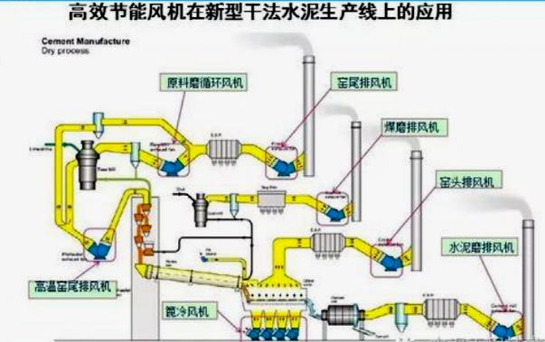 用風就得有風機,風的重要性就是風機的重要性。對于水泥生產(chǎn)來講,需要風機的地方實在是太多了,一個中等規(guī)模的水泥廠,僅就大型風機而言就有幾十臺之多,還需有多種規(guī)格的小型風機上百臺。比如大型風機(主要是離心風機),對水泥生產(chǎn)的能耗有著較大影響。
