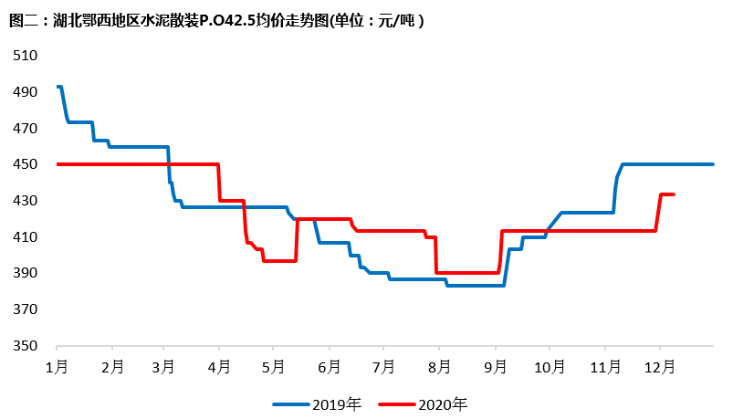 國(guó)慶中秋雙節(jié)期間由于雨水天氣持續(xù)時(shí)間較長(zhǎng),工程進(jìn)度緩慢情況下,水泥銷量偏低,多數(shù)水泥企業(yè)水泥和熟料庫(kù)存高位,加上外來水泥沖擊,10月中旬鄂東區(qū)域水泥價(jià)格上調(diào)未能落實(shí)。10月下旬,天氣好轉(zhuǎn)后,水泥銷量整體提升較好,11月初,部分水泥廠家水泥及熟料庫(kù)存下降,水泥供應(yīng)出現(xiàn)緊張,價(jià)格上漲30元/噸得以落實(shí),外來水泥隨之跟漲。11月中旬起湖北地區(qū)整體雨水天氣偏多,水泥價(jià)格整體持穩(wěn)。11月下旬,武漢地區(qū)水泥企業(yè)計(jì)劃再次通知上調(diào)價(jià)格,上調(diào)幅度為30-40元/噸,由于11月份降雨天氣較多,水泥廠庫(kù)存有所增加,本輪漲價(jià)11月能得到有效落實(shí)。12月初,天氣好轉(zhuǎn)后,武漢地區(qū)水泥落實(shí)上漲20元/噸。