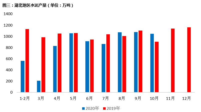 據(jù)國(guó)家統(tǒng)計(jì)局?jǐn)?shù)據(jù)顯示,2020年10月,湖北地區(qū)水泥產(chǎn)量為1049.33萬噸,同比上升13.7%。湖北水泥市場(chǎng)需求相較于去年有所回落,據(jù)國(guó)家統(tǒng)計(jì)局?jǐn)?shù)據(jù)顯示,截止2020年10月,湖北省房地產(chǎn)總投資為3843.42億元,同比下跌11.8%。市場(chǎng)需求不佳情況下,產(chǎn)量同比上升,外來水泥持續(xù)沖擊,湖北地區(qū)水泥價(jià)格后續(xù)上漲難度加大。