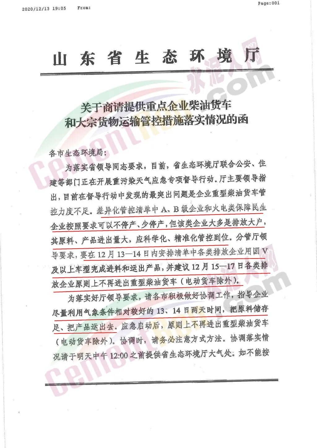日前,山東省生態(tài)環(huán)境廳發(fā)布《關于商請?zhí)峁┲攸c企業(yè)柴油貨車和大宗貨物運輸管控措施落實情況的函》稱,為落實省領導同志要求,目前,省生態(tài)環(huán)境廳聯(lián)合公安、住建等部門正在開展重污染天氣應急專項督導行動。