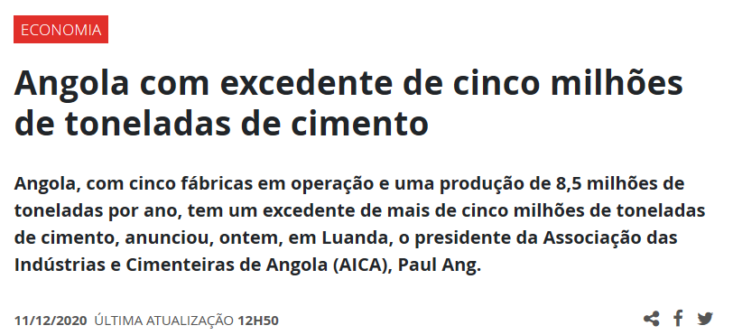 保羅·昂表示,目前安哥拉的水泥價(jià)格不但沒有上漲,相反已經(jīng)跌落到2015年價(jià)格的一半,從每噸130美元降至如今的60美元。此外,安哥拉水泥產(chǎn)業(yè)所面臨的困難還包括很難獲得外匯來維持設(shè)備和原料的采購。保羅·昂要求政府能夠降低關(guān)稅,以便能向其他國家大量出口水泥。