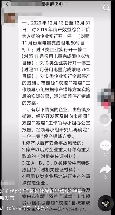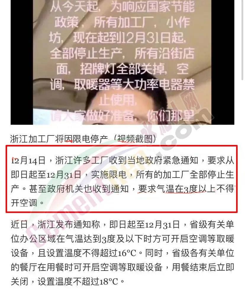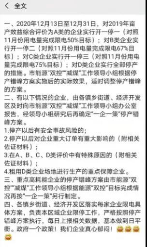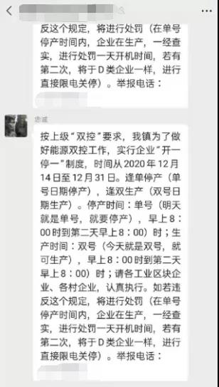 除以上地區(qū)外,湖南懷化、永州等地也已于12月5日起正式啟動(dòng)有序用電。網(wǎng)絡(luò)上也有不少工廠“曬”出了現(xiàn)狀并表示,確實(shí)已經(jīng)開始限電和停限產(chǎn)了。