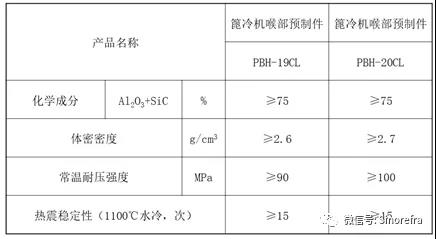 篦冷機(jī)喉部預(yù)制件技術(shù)指標(biāo)
