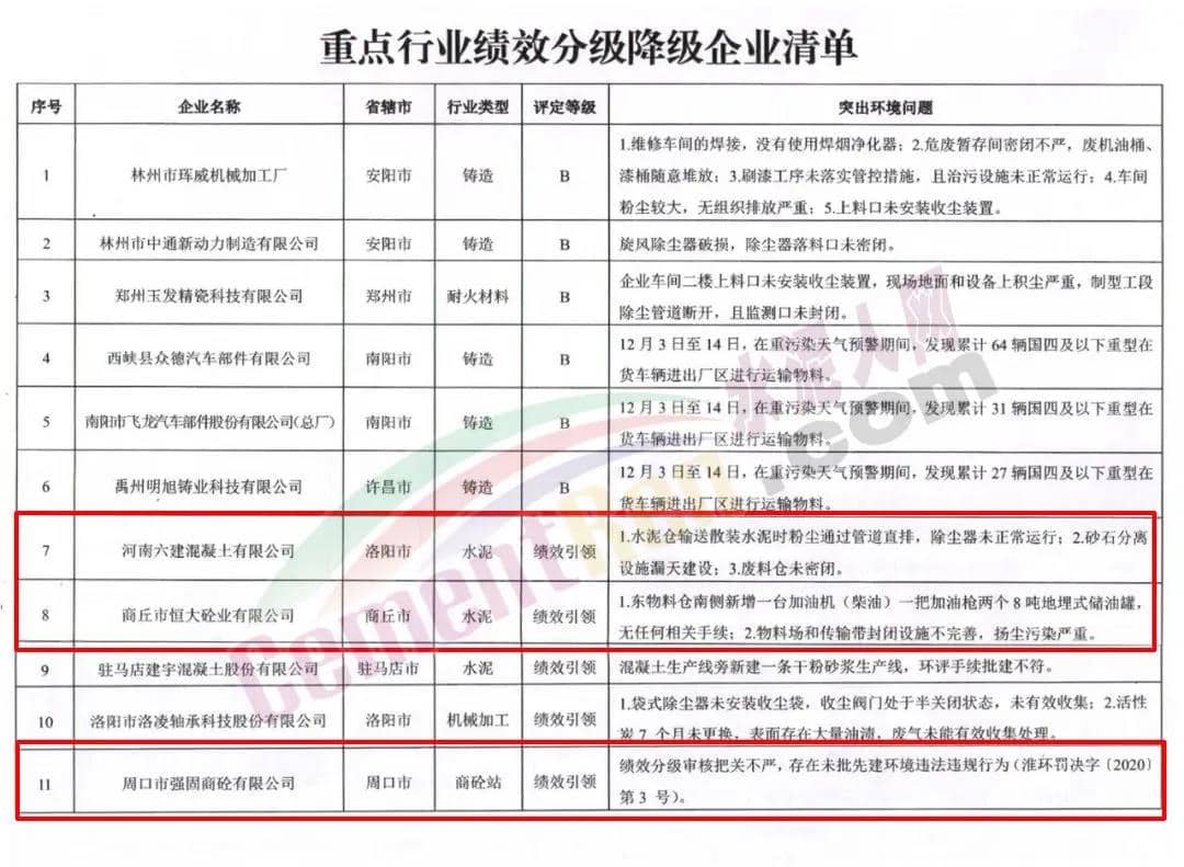 12月17日,省污染防治攻堅辦印發(fā)通報,對部分重點行業(yè)績效分級企業(yè)實施降級處理。通報指出,11月份以來,省秋冬季大氣污染防治攻堅暗訪檢查發(fā)現(xiàn),6家績效分級B級企業(yè)和5家績效引領(lǐng)企業(yè),存在治污設(shè)施不正常運(yùn)行、無組織排放嚴(yán)重、管控措施落實不力及在重污染天氣預(yù)警期間違規(guī)使用國四及以下車輛等環(huán)境突出問題。經(jīng)省污染防治攻堅戰(zhàn)領(lǐng)導(dǎo)小組辦公室研究決定,取消上述6家績效分級B級企業(yè)資格,降為C級企業(yè);取消上述5家績效引領(lǐng)企業(yè)資格。