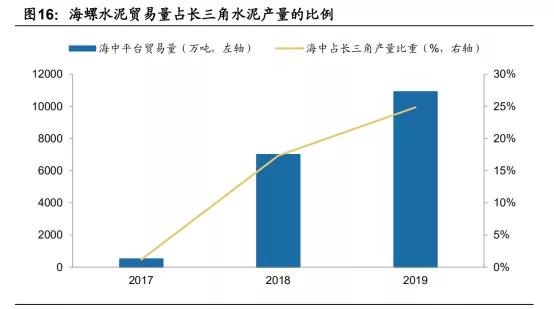 安徽海中貿(mào)易公司的設(shè)立進(jìn)一步強化了行業(yè)自律,拓寬了海螺水泥在長三角市場的護(hù)城河,讓公司的大本營更加穩(wěn)固——2017年平臺貿(mào)易量僅占長三角水泥產(chǎn)量的1.5%,這一比例在2018年提升至17.3%,2019年進(jìn)一步提升至24.8%;熟料貿(mào)易公司一是更好控制銷售渠道、占領(lǐng)市場,二是更好防止外來水泥和熟料的無序競爭,穩(wěn)定長三角水泥價格,三是更好保障自己熟料產(chǎn)能充分發(fā)揮,鞏固自己成本優(yōu)勢。