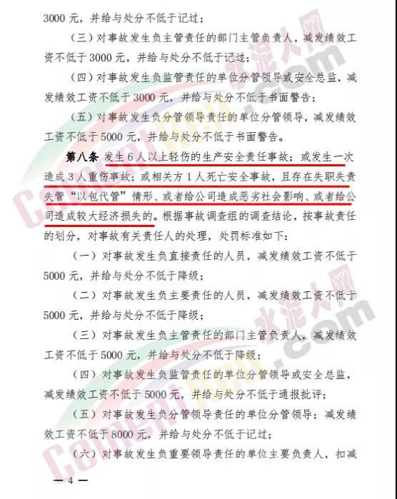 據(jù)水泥人網(wǎng)了解,金隅冀東內(nèi)部一直都有規(guī)定,凡發(fā)生事故的企業(yè)從上至下全部處以金額不等的罰款,年終獎(jiǎng)勵(lì)也按比例減少,相關(guān)責(zé)任人甚至?xí)唤德毣蛘咿o退。