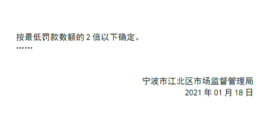 寧波市江北區(qū)市場監(jiān)督管理局行政處罰決定日期為2021年1月18日。