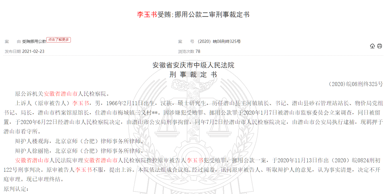 2021年2月23日,中國裁判文書網(wǎng)公布了該案二審刑事判決書。