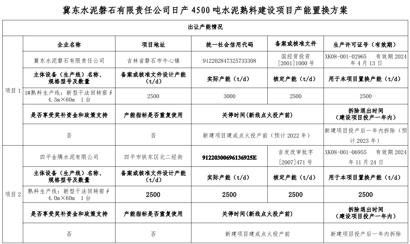日產(chǎn)4500噸水泥熟料建設(shè)項(xiàng)目產(chǎn)能置換方案的公告