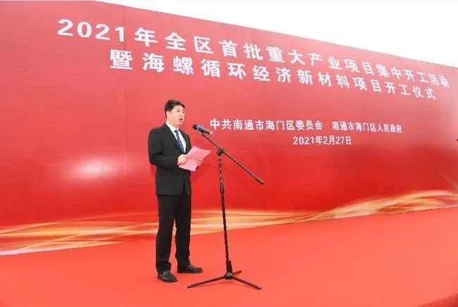 2月27日上午,江蘇省南通市海門區(qū)委、區(qū)政府在海門港新區(qū)海螺新材料項(xiàng)目現(xiàn)場(chǎng)舉行2021年全區(qū)首批重大產(chǎn)業(yè)項(xiàng)目集中開工活動(dòng),動(dòng)員全區(qū)上下堅(jiān)定必勝信心,激發(fā)昂揚(yáng)斗志,大干快干、埋頭苦干、真抓實(shí)干,努力開創(chuàng)施工項(xiàng)目熱火朝天、竣工項(xiàng)目接二連三、儲(chǔ)備項(xiàng)目源源不斷的生動(dòng)局面,為勇當(dāng)“兩爭(zhēng)一前列”領(lǐng)跑者提供強(qiáng)勁支撐。