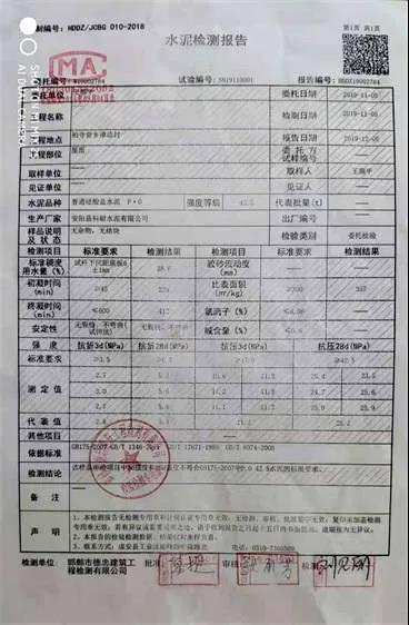 令人想不到的是,10月28日拆模板時(shí)竟然發(fā)現(xiàn)房頂?shù)乃噙€沒有完全凝固。我當(dāng)即就與柏寺營鄉(xiāng)的安運(yùn)聯(lián)系。10月29日下午,安運(yùn)與鄭家莊村的經(jīng)銷商高志杰一同到我家,讓我用小錘敲擊房頂邊,發(fā)現(xiàn)水泥一塊一塊的散落。經(jīng)銷商高志杰用手機(jī)錄了視頻,并且還拉走一袋剩余的水泥說要送到廠家檢驗(yàn)。誰知,至今兩個(gè)多月過去了,一直沒有給我任何說法。期間,我只好把剩余的水泥送到“邯鄲市德忠建筑工程檢測(cè)有限公司”進(jìn)行檢測(cè)。檢測(cè)結(jié)果:此水泥的抗折、抗壓各項(xiàng)指標(biāo)幾乎全部不符合標(biāo)準(zhǔn)。(視頻、照片、檢測(cè)報(bào)告等相關(guān)證據(jù)附后)盼望上級(jí)領(lǐng)導(dǎo)能夠體貼民情,在百忙中安排執(zhí)法人員查處偽劣商品。替平民百姓討一個(gè)公道!”